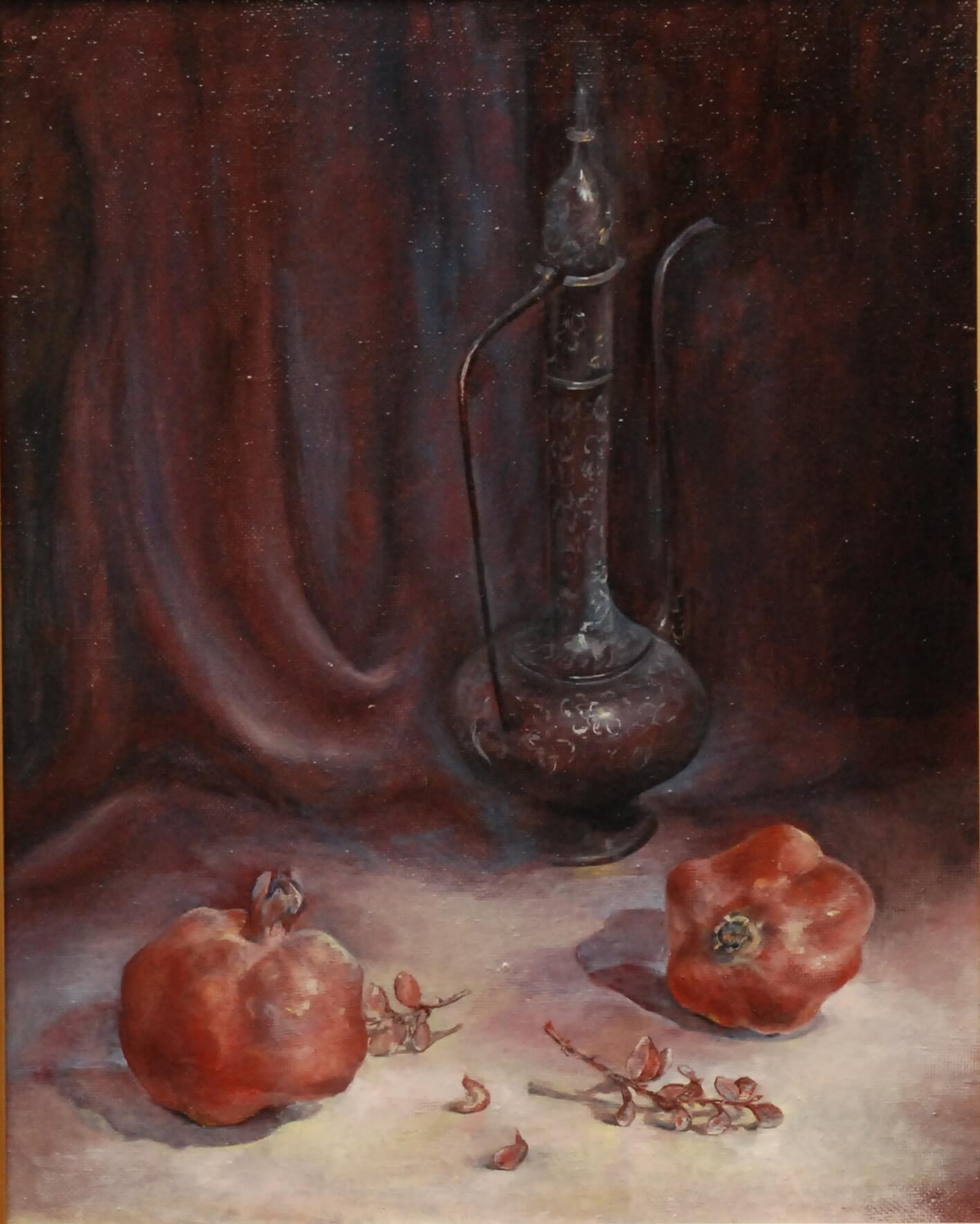 Картина "Натюрморт с гранатами" .Живопись, художник Оксана Копейкина-Сорокина, холст, масло, 40х50 см. 2009 год. Продано. Частная коллекция. Испания.